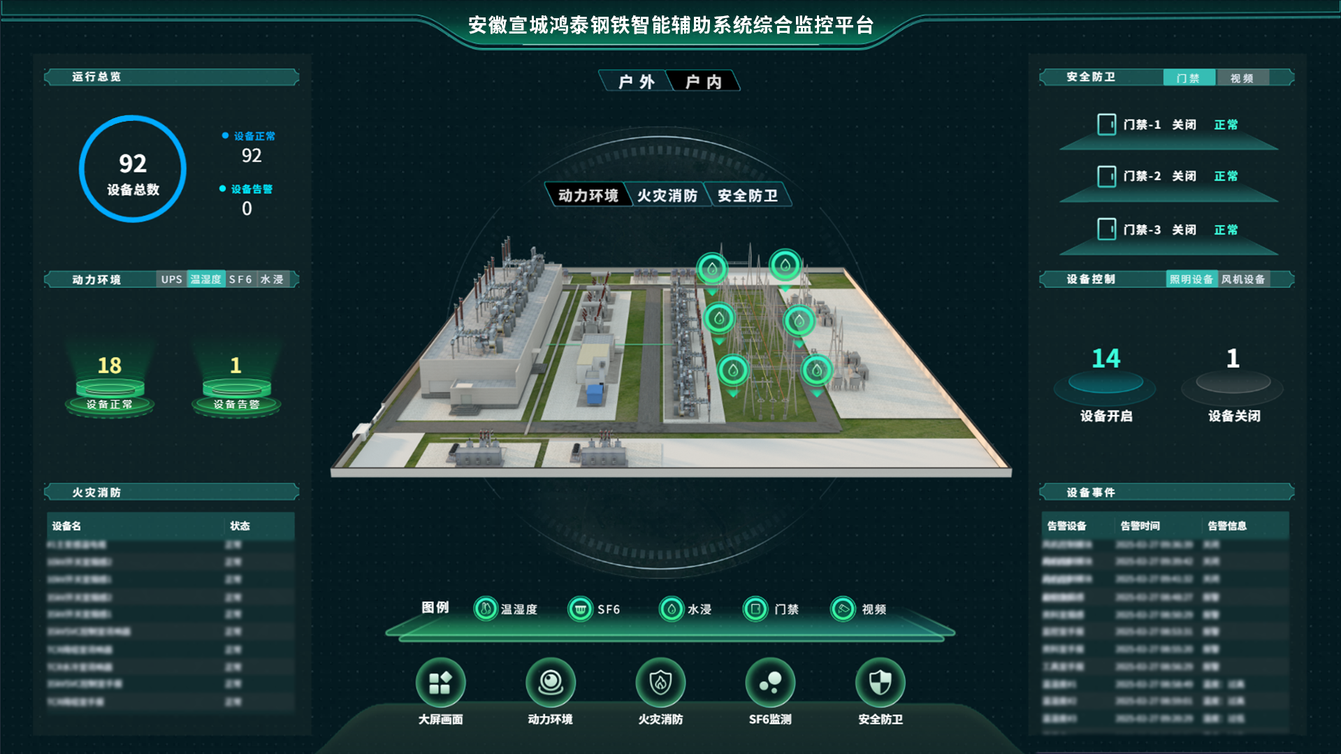 鸿泰钢铁动环监控系统成功部署后,实现了生产设施的全方位智能化管理,显著提升了企业运营效率与安全性。系统覆盖全厂变电站、配电室及关键区域,实时监测电力参数(电压、电流、功率)、环境数据(温湿度、水浸、有害气体)及安防状态,并通过智能分析平台实现数据可视化。