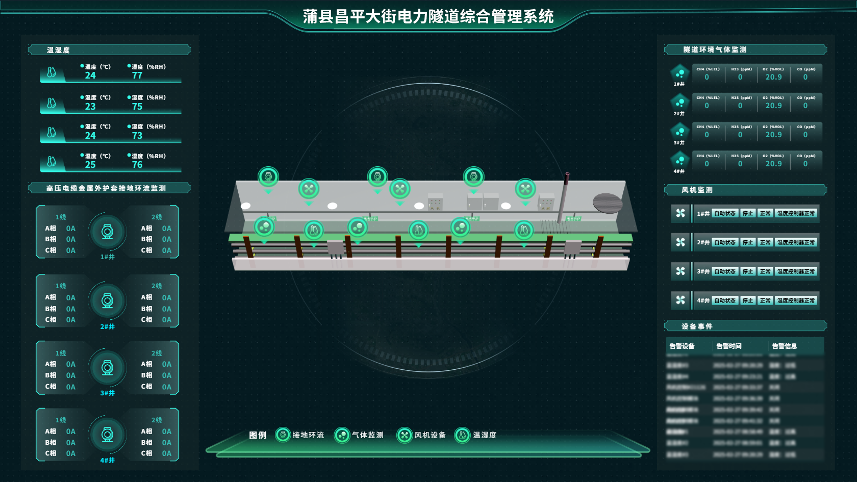 实时监测:3D可视化大屏展示电力隧道运行状态。