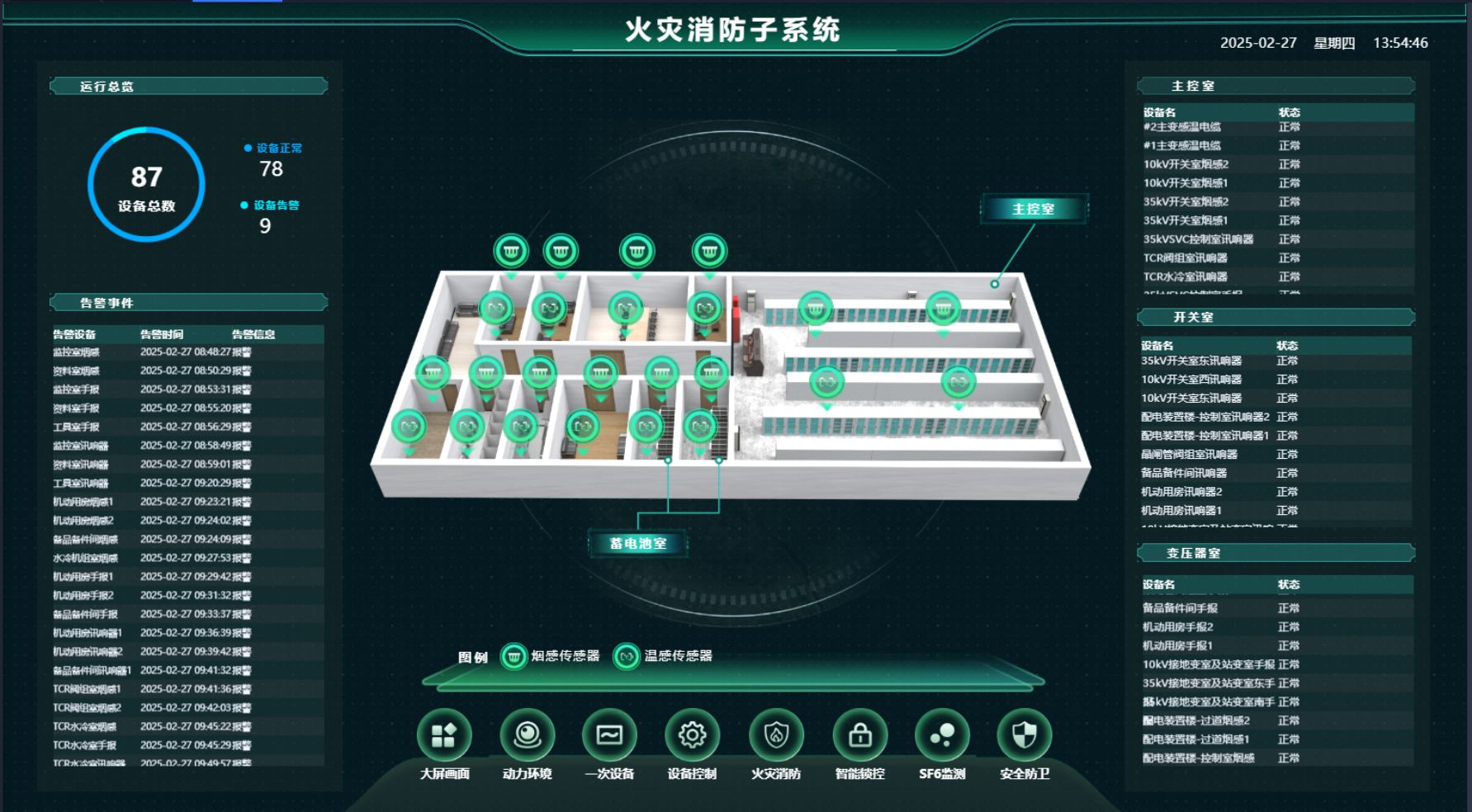 远传功能:支持通过61850/104通讯报文规范,将安防、状态监测、动环信息经由辅控主机统一上送至集控系统。