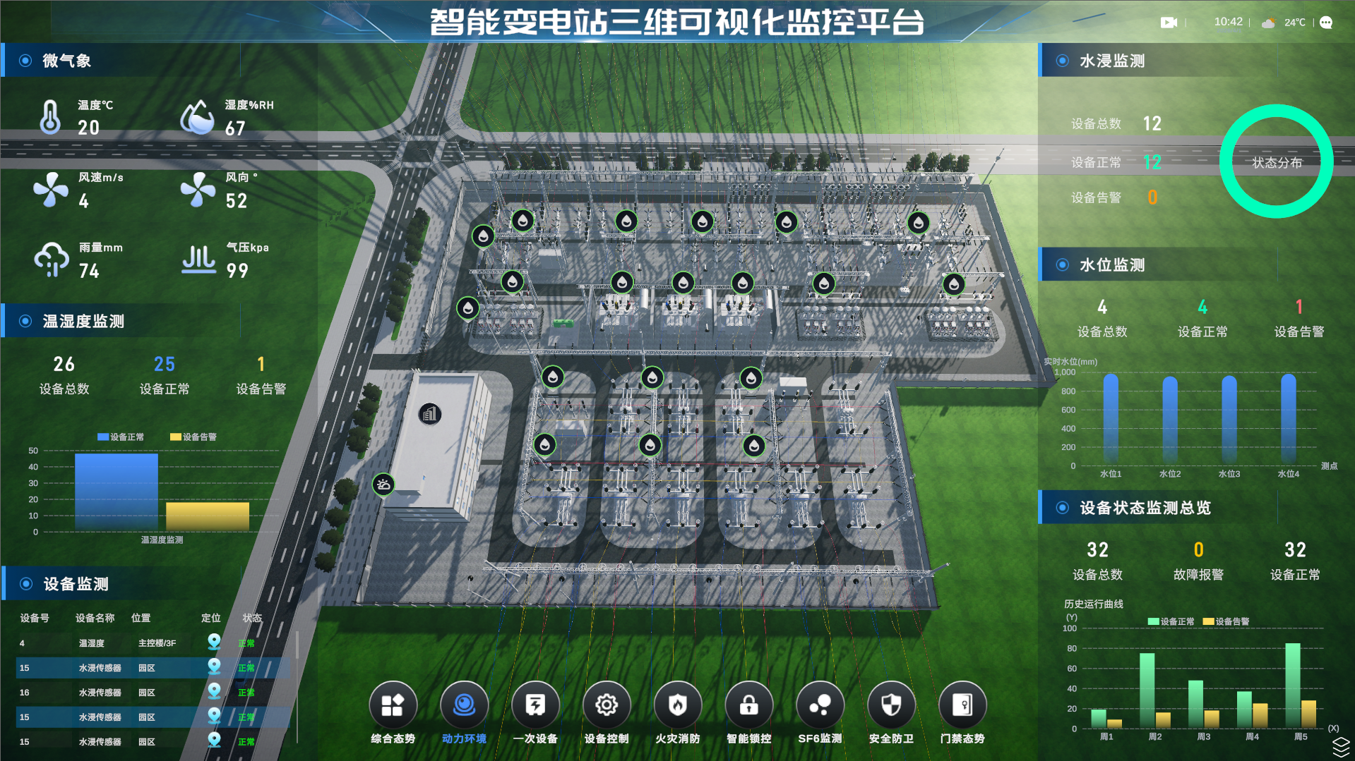 “变电站智能辅助系统综合监控平台”是安正信科技综合采用自动化、计算机、网络通信、视频压缩以及各种物联网技术,通过对变电站环境、图像、火灾报警、安全警卫、一次在线监测、视频AI识别、视频巡检等综合监测,不但实现预警,而且还可以实现对警情的管理和控制。系统通过监测、预警和控制三种手段,并通过统一的监测平台对巡检数据进行对比和趋势分析,及时发现电力设备运行情况和环境中存在的安全隐患及故障先兆,提高变电站运维检修自动化和智能化水平,确保设备安全可靠运行。