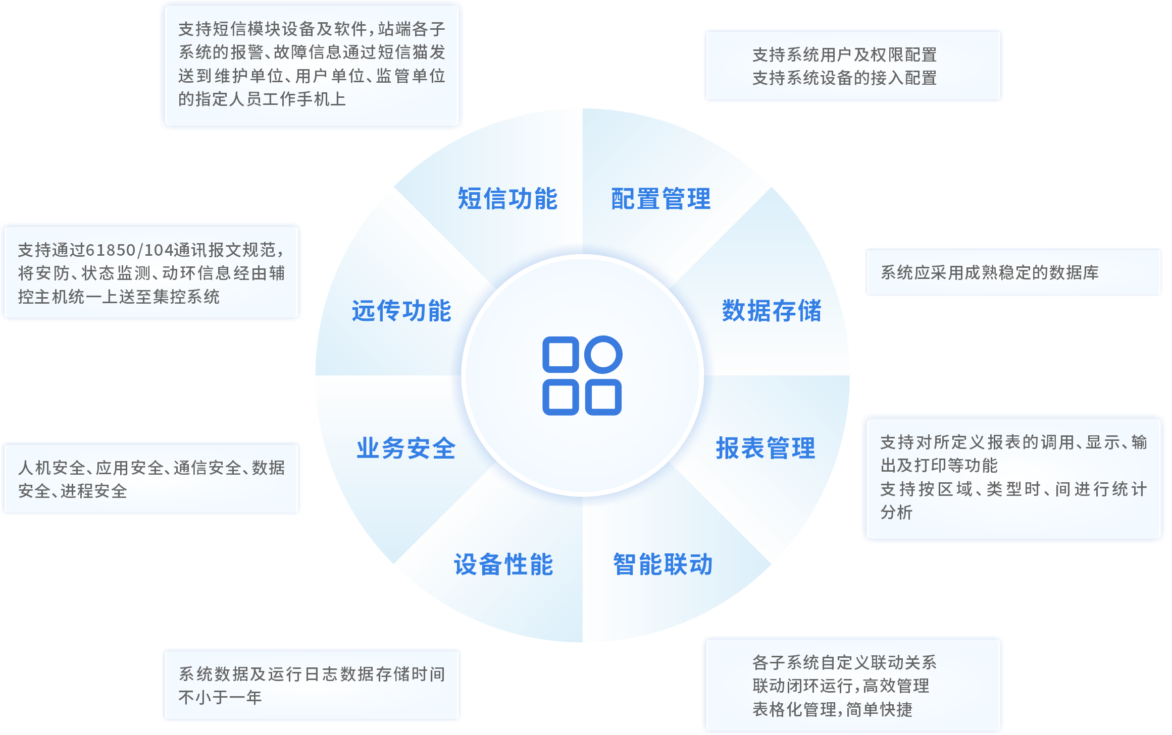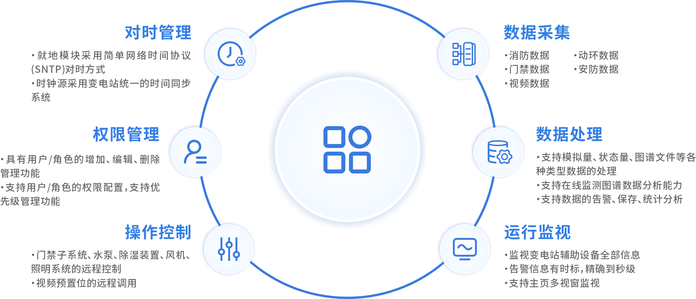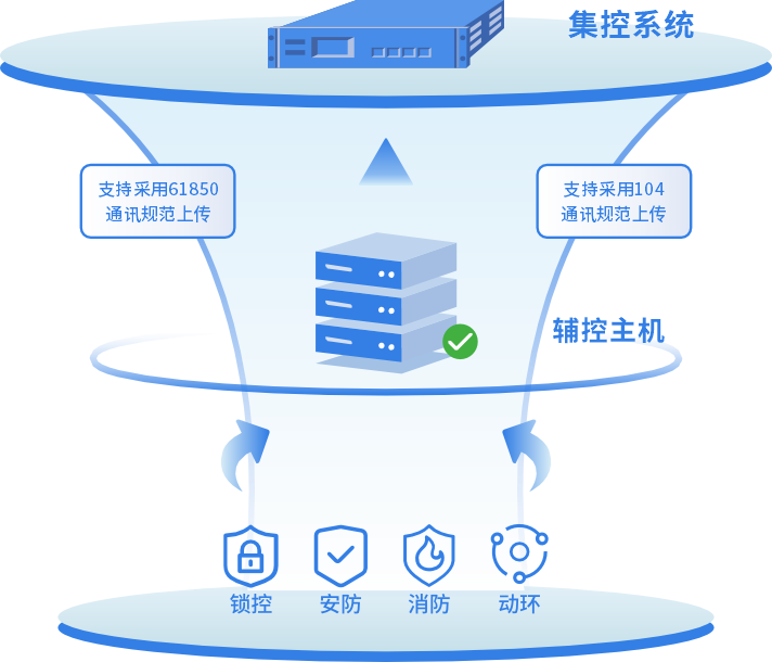 支持采用61850、104通讯报文规范,将安防、状态监测、动环以及锁控监控信息经由辅控主机统一上送至集控系统。