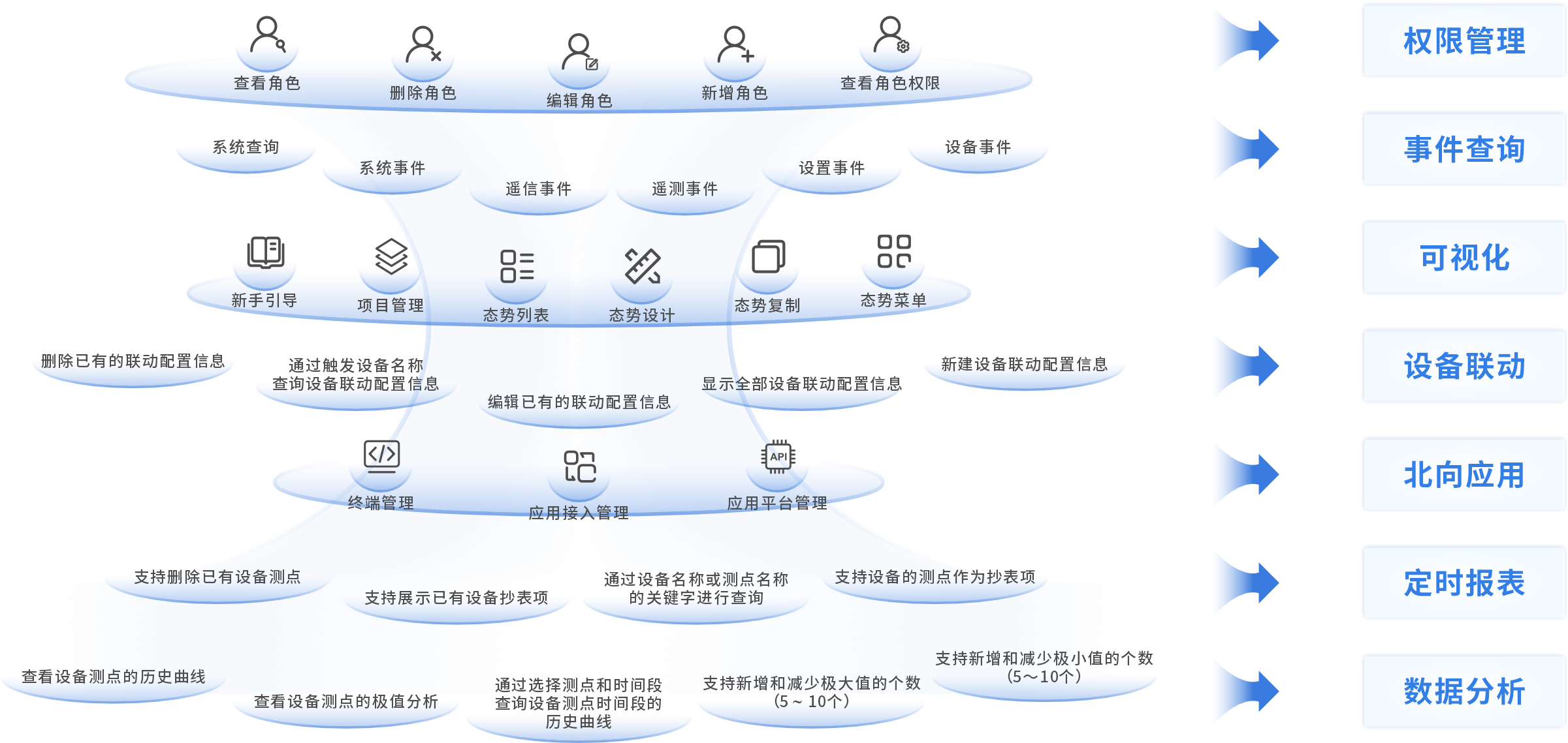 ●支持通过网络结构图和列表结合的方式,实现对实时在线监测数据、告警信息、故障状态的监控