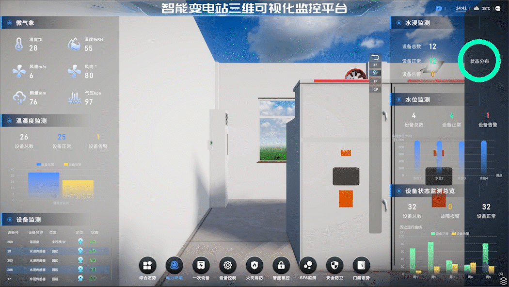 ●图形化显示前端传感器的点位分布和运行状态