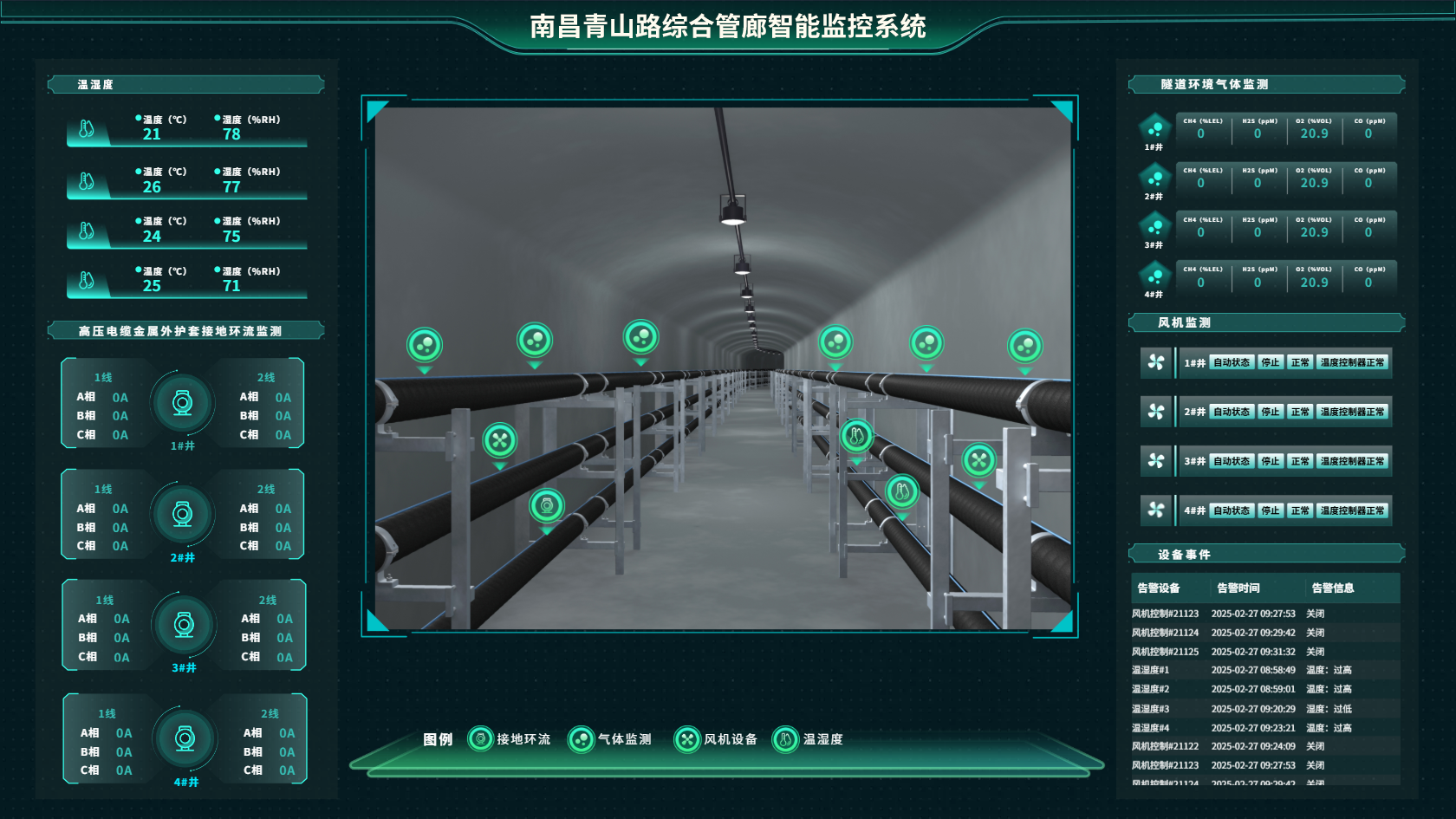 温湿度监测:监测隧道内温湿度,防止过高温度或湿气影响管线安全。