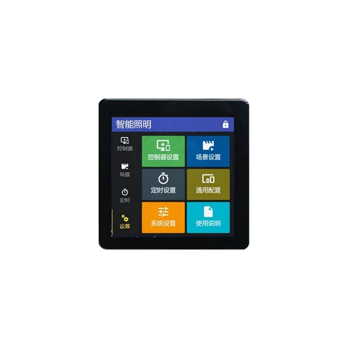本款设备采用钢化玻璃触摸材质,时尚美观高档。面板的按键通过RS485总线与电脑系统软件编程实现不同的功能不同的场景设置如:全开、全关触发场景、组控制、交叉控制多点控制各个模块等,可自由组合多个面板实现多个场景设置。
