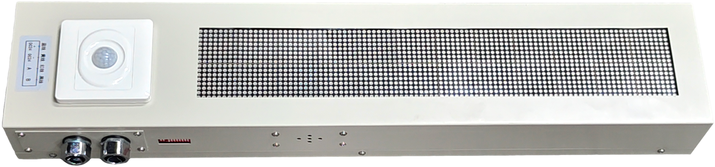 本款LED显示屏由控制单元、通信单元、显示单元、人体红外单元和语音单元组成,主要安装在SF6开关室、组合电器室(GIS)等场所入口处,用于显示和播报室内SF6和氧气的数值和安全情况。