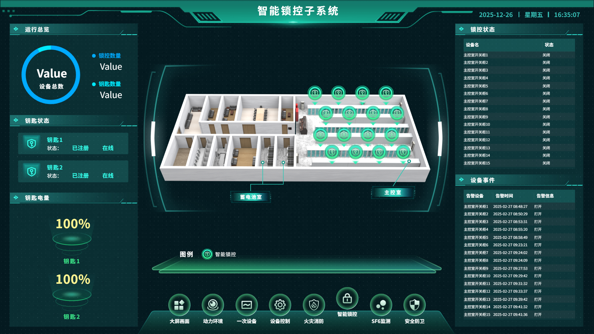 支持通过平面图或设备树方式,实现对所辖变电站智能锁控系统的集中管理